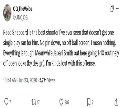 并不是只有Bradeaux一位火箭媒體人感到不解,大量火箭媒體人與當地資深球迷發聲表達質疑,不理解為何謝潑德如此出色的三分手,卻在進攻體系中完全無法獲得任何戰術安排。